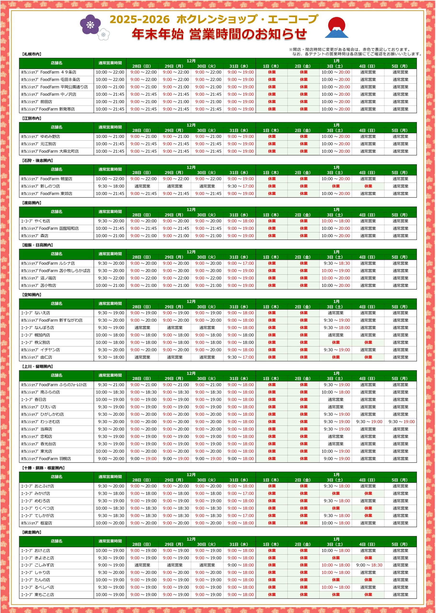 ホクレンショップわっさむ店 営業時間変更のお知らせ