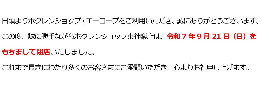 > ホクレンショップ東神楽店 閉店のお知らせ