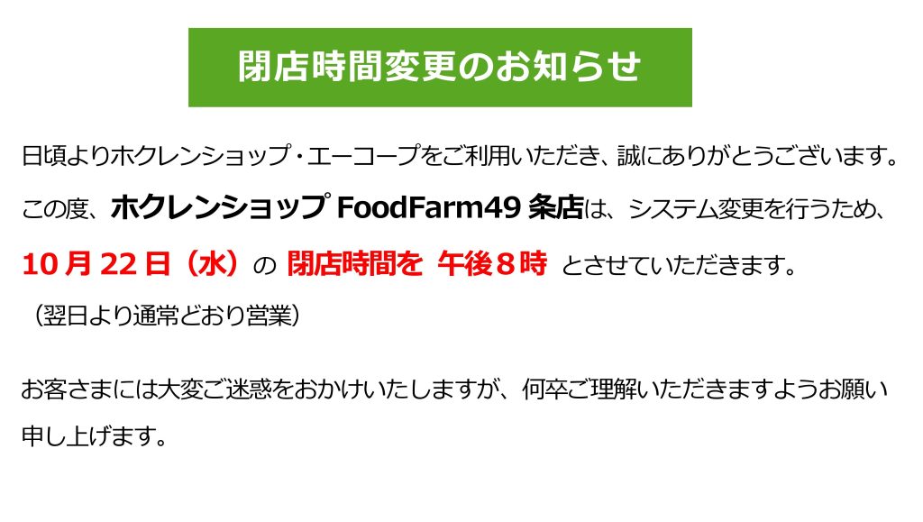 > ホクレンショップFoodFarm49条店からのお知らせ