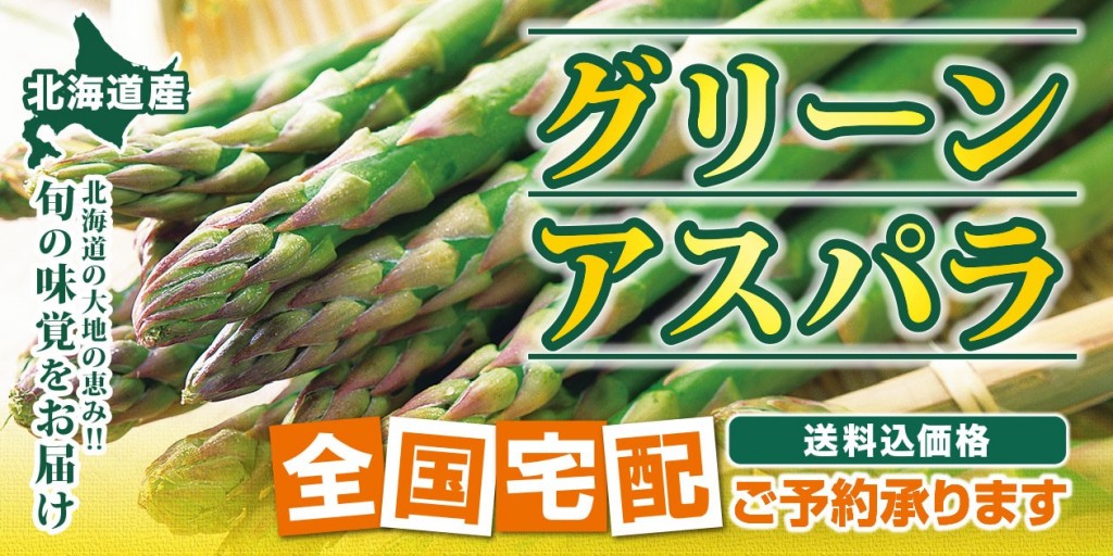 トップページ > お知らせ一覧 > 北海道グリーンアスパラ全国宅配承り中!